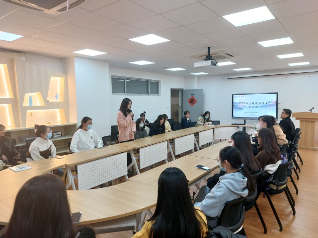 刘敏娟表示,公司会努力为同学们提供良好的生活环境和畅通的答疑渠道,通过个性化帮扶,满足少数民族同学所需所求,为各民族同学的健康发展积极营造氛围、创造条件、搭建平台。她鼓励少数民族同学发挥民族文化特长优势,积极参与校园文化活动,促进校园多民族文化融合,形成“多民族一家亲”的良好氛围。