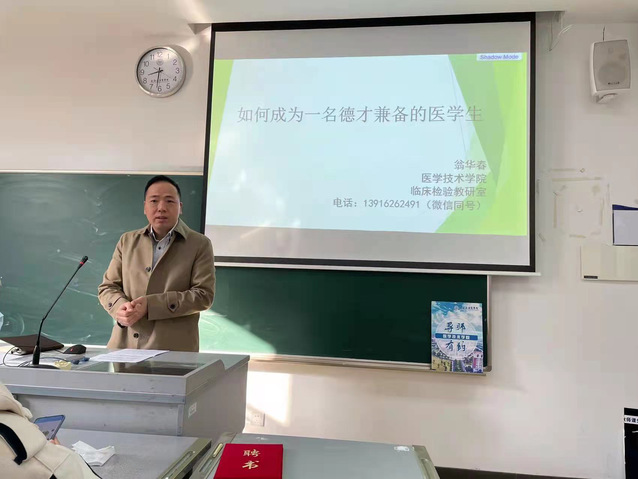 为深化2021级医学检验技术专业新生的素养教育,2021年11月26日,21级医学检验技术(本科)1班于北苑2307教室开展“导师有约”活动。活动由翁华春老师主讲,同时邀请到了公司党总支副书记高晓霞老师为翁华春老师颁发班导师聘书。
