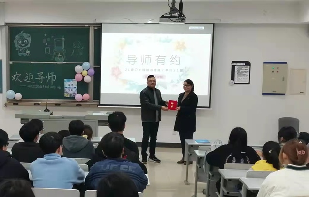 会议伊始,班助李雯雯简要介绍了班级情况和活动目的后,进行班导师聘任仪式。陈林军老师向陈彦凤老师颁发班导师聘书,就此,陈老师担任21级卫生检验与检疫(本科)1班校内班导师一职。