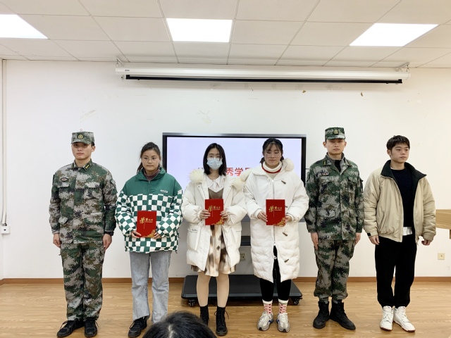 方严教官从维护班集体荣誉、保持良好习惯等方面向全体同学提出了下一阶段半军事管理的要求。接着,教官们为在本次半军事化管理期间表现优异的李姿萱、沈相茹、张嘉颐三位同学颁发“优秀学员”证书。李姿萱同学代表全体同学表达对公司和公司老师们、教官们的真挚的感谢,她回忆这半年的半军事化管理生活,深感个人责任感和集体荣誉感不断增强,希望同学们在接下来的半军事化管理中锻炼自己的能力,为班级增光添彩。随后,高晓霞老师和白妞老师为同学们线上投票评选出的优秀教官方严颁发证书。