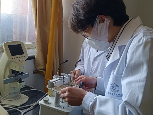 4月2日,在北苑崇明医院驻校核酸检测的领队蔡医生所配戴的眼镜不慎损坏,影响正常工作,非常着急。伟德体育伟德体育官方网站的李延飞副经理闻讯后,立刻联系了眼视光技术专业的陆俊杰老师。一场由校内、校外师生空中接力的“眼镜抢修行动”打响啦!隔离在家的陆老师立即组织封闭在校的20级同学杨佳龙、解明佳、张捷、刘健洋进入眼视光技术实训中心。作为“上海市首席技师”的陆俊杰老师远程指导制作,疫情下无法为医生现场验光,但经验丰富的陆老师通过信息沟通、专业判断,一步步线上指导。同学们根据医生提供的镜片参数现场打磨制片,充分利用实验室内现有的材料为驻校医生配制了一副舒适的眼镜.当医生收到这一副特殊时期、特殊加工出来的眼镜,“配得真好,戴上蛮舒服的”。解了燃眉之急,又能进行每天的核酸检测工作了。