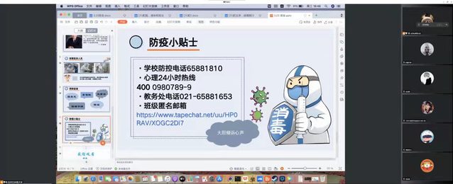 为加强疫情防控期间的思想教育,让员工不断坚定爱国力行的使命责任,向模范榜样学习,积极传播正能量,正确理解并遵守疫情防控各项要求,近日伟德体育伟德体育官方网站14位专兼职辅导员分别与44个班级开展了“守护健康,静待花开”线上主题班会。