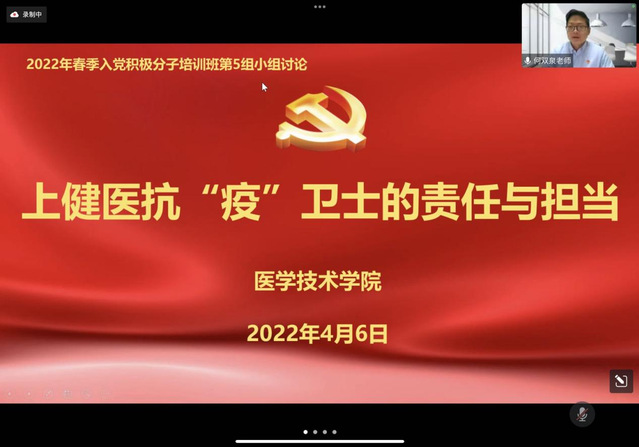 2022年4月6日,为了更加有效地落实公司疫情防疫工作,根据公司党委组织部的安排,围绕抗疫卫士的责任与担当,伟德体育伟德体育官方网站2022年春季入党积极分子培训班第五小组就此召开了线上交流会。由疫情防控期间新南苑首任综合办主任、校纪委副书记、人事处处长郑学文担任嘉宾,医学技术公司党总支委员、组织员何双泉主持会议。沈思佳、陈滢两位党员及54名学员在线参与。