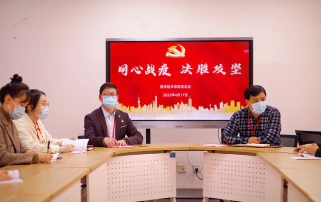 为进一步凝聚力量,加强疫情防控工作,在关键时刻守护好防控成果,医学技术公司党总支于4月17日中午在4507召开“同心战疫 攻坚决胜”疫情防控工作会议。医学技术公司党总支委员、李延飞副经理,辅导员高源、白妞、张鑫妍老师及全体在校员工党员参加会议,会议由公司组织员何双泉老师主持。