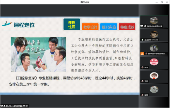 为了进一步推进本科教学合格评估工作,公司在开展医学检验技术和卫生检验与检疫技术专业教师“说课程”活动之后,于2022年4月21日又开展了口腔医学技术专业线上教师“说课程”专题教研活动,专业全体教师在线参加。