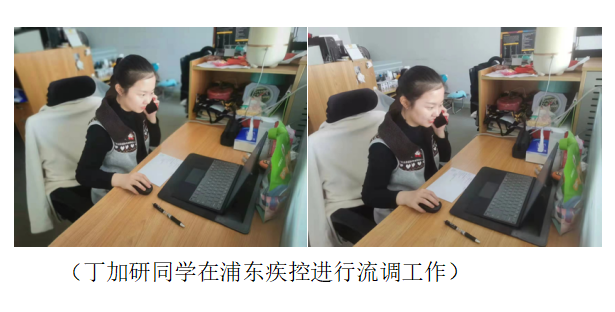作为毕业班同学,丁加研正在浦东新区疾病预防控制中心实习。在疫情防控期间,得知单位流调人手不足后,她作为一名勇于担当、甘于奉献的入党积极分子,在面临毕业论文实验、考研复试等重要工作中,依然毫不犹豫地加入了浦东疾控防疫流调队伍,负责起密接流调和信息整理工作。对于加班加点的紧急工作,她毫无怨言;对于流调工作中的不被理解,她也一一耐心解答。她认为,身为一名医员工,有责任、有义务在疫情期间站出来,为防疫工作献一份力。近日传来好消息,丁加研顺利被录取为上海中医药大学研究生。她也坚定地相信,只要大家团结一致、共同努力,就一定能迎来胜利的曙光!
