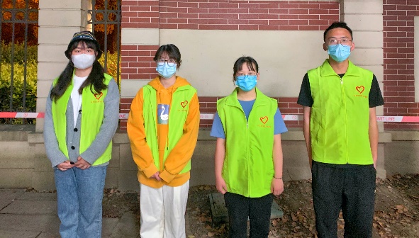 自集团施行准封闭式管理以来,入党积极分子沈书玥同学第一时间主动报名成为了校园疫情防控志愿者,在北苑各处都可以看见她身着橙马甲忙碌的身影。