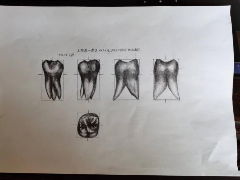 2022年4月中旬,正值全民守“沪”的关键时刻,口腔医学技术专业团队在线上教学的岗位上,创新教学方式,以《牙体形态学》和《口腔解剖生理学》两门专业基础课的培养目标为出发点,举办了线上“牙体解剖形态描绘大赛”。