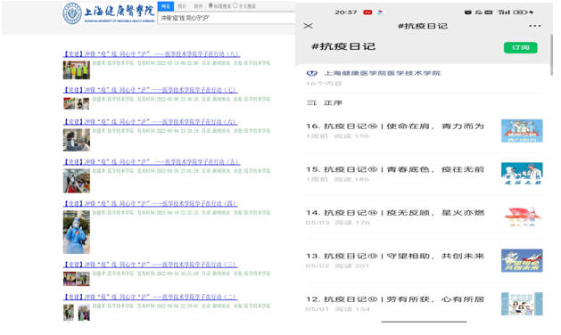 挖掘事迹,当好疫情防控工作的“宣传员”。疫情就是命令,新闻报道就是宣传主阵地。在疫情防控工作“逆水行舟,不进则退”的关键时期,党员同志尤其要发出好声音,传播正能量。大力宣传抗疫斗争中涌现的优秀典型,通过采访报道、开设专栏、随手拍等形式弘扬典型事迹,生动讲述抗疫一线的先进事迹。更好地强信心、暖人心、聚民心,形成全民战疫的强大合力。他们是示范者,也是宣传员。陈滢、丁易、毛韵昕、沈思佳、彭怡等员工党员在组织员何双泉的带领下,深入挖掘疫情防控中涌现的先进事迹,形成《冲锋“疫”线 同心守“沪” ——伟德体育伟德体育官方网站学子在行动》系列报道。以白妞老师为首的网络思政工作室,借助新媒体,征集感人的抗疫故事,形成“抗疫日志”。他们宣传了正能量,为校园疫情防控工作凝聚力量、筑牢思想高地,提升了同学们战胜困难的决心和毅力。彭怡同学在采访中表示,“讲述身边同学的故事,我也会被他们感动,相信众志成城,共克时艰,疫情一定会过去。