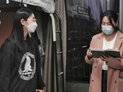 关心同伴,当好疫情防控工作的“贴心人”。志愿者队伍开展党员联系宿舍活动,92人走访253间宿舍,关心同伴诉求,搭建公司和同学交流的桥梁。走访过程中,将同学们的困难及需求,汇总成《党员联系群众服务清单》,31个问题清单,均在24小时内予以解决或反馈,以实际行动诠释了同学的“贴心人”。作为一名党员,19级卫生检验与检疫(本科)2班的樊瑾瑜也说:“疫情突如其来,但有校园中各位老师的有序安排,我们每一个党员也都愿意站出来,坚守在岗位上,为疫情散去奉献出自己的一份力!我相信,胜利就在前方!”21级卫生检验与检疫(本科)1班沈书玥同学说:“看似紧张的50多天,我也在慢慢成长,投身防疫,能为同学做点事,我也很开心,希望同学们都能早日相聚健康园!”