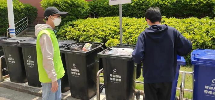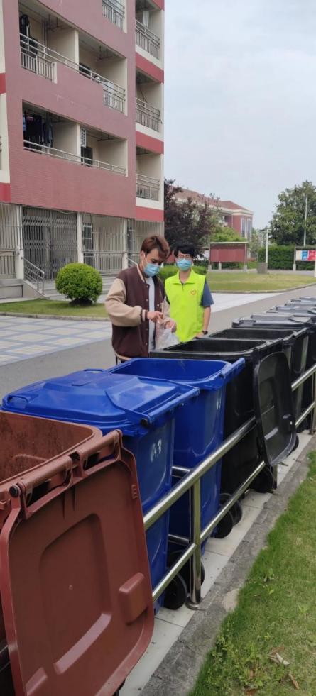为了维持校园环境整洁,避免垃圾站点超负荷工作,志愿服务队还开展了垃圾分类引导工作。在垃圾分类宣传落实工作中,校园里涌现出这样一个个党员志愿者,他们用一颗热心,担负起这样一种社会责任,携带着垃圾分类相关知识和技能,奉献自己的一份力量。20级医学检验技术专升本班翁晓庆在公司准封闭管理期间,积极响应公司号召投入志愿服务活动,她表示:“作为‘健康园’的一份子,我会积极参与到公司疫情防控工作中,抗击疫情、共克时艰,用实际行动践行‘厚德至善 健行康民’的校训精神。”19级医学检验技术(本科)1班罗许凡不论烈日还是下雨,都会准时出现在寝室楼下,“同学,饭盒打开倒一下湿垃圾”成为了他挂在嘴边的话。他表示:“我们的一个小举动,便可以减轻垃圾房师傅的工作量。同时也希望大家能继续保持垃圾分类的好习惯!”