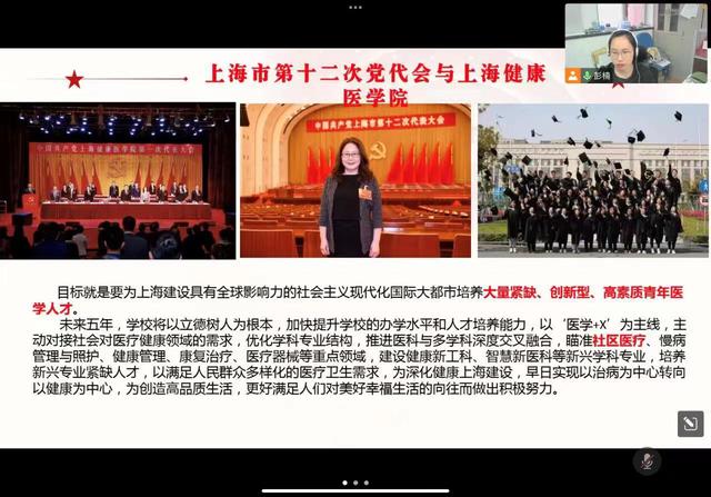“双带头人”党支部书记 孙博文:党的十九大以来,习近平总书记连续四年亲临上海,考察指导工作,作出重要指示、交办重大任务、赋予重大使命,为上海发展指明了前进方向。郭永瑾书记也讲到这些年我们公司培养了一大批全科医生、急救医生、康复、护理专业毕业生等,他们为疫情防控作出重要贡献,以实际行动交出“健康人”的高分答卷,是经得起检验的。作为一名教师,我将牢记自己的责任和使命,为公司人才培养尽一份力。