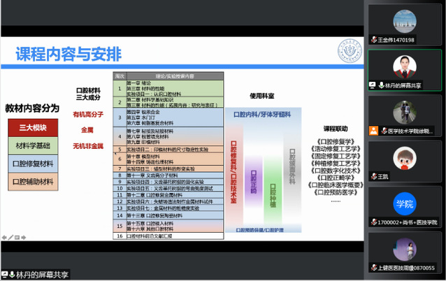 林丹老师展示了《口腔材料学》中“义齿高分子材料”章节的授课内容,她以完整、详细的教案为载体,充分说明了义齿基托树脂的定义、种类和化学组成,联系全口义齿修复技术引出义齿重称材料的内容,同时还加入了文献检索、小组汇报等教学手段,融入知识产权、品牌意识等思政元素,内容充实。
