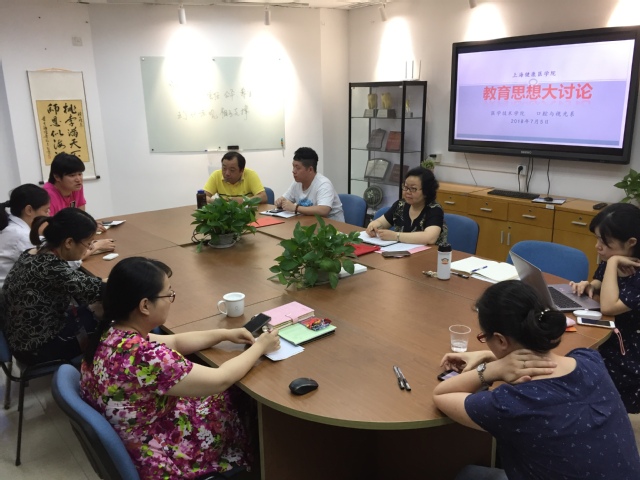 2018年7月5日下午,伟德体育伟德体育官方网站口腔与视光系全体教师在北苑3号楼209会议室组织开展了2018年教育思想大讨论活动。此次活动根据上级党委的文件精神和指示,陈凤贞副经理主持,口腔与视光系全体教师积极参与讨论,活动效果明显、反响热烈。