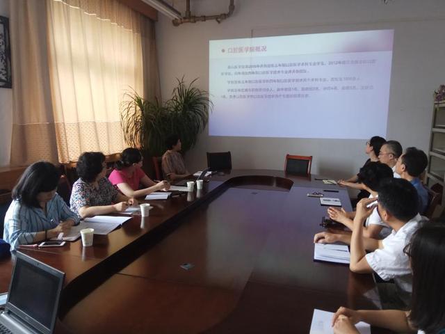 考察伊始,泰山医公司口腔基础教研室教师向公司详细介绍了泰山医公司口腔医学技术本科专业的人才培养方案,教学进程以及实习大纲。双方专业教师就课程设计,实践课内容,实习管理,就业情况及创新创业教育等本科专业教学的各个方面进行了面对面地深入交流。