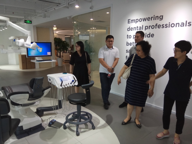 随后,一行人又走访了登士柏西诺德(上海)有限公司,在区域经理聂培研的陪同下参观了该公司坐落在万航渡路的新址,并就深化人才培养合作做了深入的探讨。登士柏西诺德是全球最大的专业牙科产品和技术的制造商,在美国纳斯达克上市,拥有130年历史,为牙科行业和世界病患提供了创新和服务。登士柏西诺德开发、制造和销售综合解决方案,提供牙科产品、口腔保健产品及其它医疗设备耗材,其全球总部设在美国约克,宾夕法尼亚州,国际总部设在奥地利萨尔茨堡,在全球40多个国家拥有约15,000名员工,在120个国家拥有销售机构。