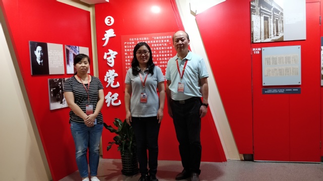《中国共产党人的家风》通过家书、家训、照片等珍贵史料,展出了不同历史时期32位优秀共产党人特别是老一辈革命家感人的家风故事。它真实地展现了共产党人以身作则,培育优良家风,体现了共产党人有思想信念、严于律己、廉洁自律的优良传统。在《信仰的力量—中国共产党人的家国情怀》的参观中,全体老师追寻着以中国共产党人坚守信仰的主线,以革命先辈的家国情怀为切入点,真切地汲取了信仰的力量。在近240件档案和视频资料中,有珍贵的《共产党宣言》德文草稿,还有毛泽东、周恩来、邓小平等老一辈革命家的书信,这些都生动展示了共产党人追求革命真理、坚定理想信念、严守党规党纪、勤政为国为民的高尚品格。